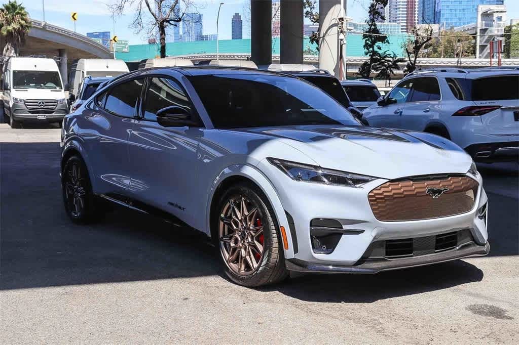 Glacier Gray Metallic TriCoat 2025 Ford Mustang Mach-E GT AWD Single-Speed Automatic Dual Electric Motor 10 Speakers, 4-Wheel Disc Brakes, ABS brakes, Adaptive suspension, Air Conditioning, Alloy wheels, AM/FM radio: SiriusXM with 360L, Apple CarPlay/Android Auto, Auto High-beam Headlights, Auto-dimming Rear-View mirror, Automatic temperature control, BlueCruise Equipped (One-Time Purchase), Brake assist, Bronze Appearance Package, Bronze Mesh Front Grille Shield, Bumpers: body-color, Compass, Delay-off headlights, Driver door bin, Driver vanity mirror, Dual front impact airbags, Dual front side impact airbags, Electronic Stability Control, Emergency communication system: 911 Assist, Equipment Group 400A Standard Package, Exterior Parking Camera Rear, Four wheel independent suspension, Front anti-roll bar, Front Bucket Seats, Front Center Armrest, Front dual zone A/C, Front License Plate Bracket, Front reading lights, Fully automatic headlights, Garage door transmitter, Heated door mirrors, Heated front seats, Heated Perforated ActiveX Performance Seats, Heated steering wheel, Hood & Decklid Stripe/Door Graphics Delete, Illuminated entry, Knee airbag, Low tire pressure warning, Mach-E 4X Door Badges & Rear GT Badge, Memory seat, Mobile Power Cord (120V/240V), Mustang Mach-E GT Performance Upgrade, NACS Fast Charging Adapter, Navigation system: Connected Navigation, Occupant sensing airbag, Outside temperature display, Overhead airbag, Overhead console, Panic alarm, Panoramic Fixed-Glass Roof, Passenger door bin, Passenger vanity mirror, Power door mirrors, Power driver seat, Power Liftgate, Power passenger seat, Power steering, Power windows, Radio data system, Radio: B&O Sound System by Bang & Olufsen, Rain sensing wipers, Rear anti-roll bar, Rear seat center armrest, Rear side impact airbag, Rear window defroster, Rear window wiper, Remote keyless entry, Security system, SiriusXM w/360L, Speed control, Speed-sensing steering, Speed-Sensitive Wipers, Split folding rear seat, Spoiler, Steering wheel mounted audio controls, SYNC 4A w/Enhanced Voice Recognition, Telescoping steering wheel, Tilt steering wheel, Tire Inflator & Sealant Kit, Traction control, Trip computer, Turn signal indicator mirrors, Variably intermittent wipers, Wheels: 20 Monochromatic High Gloss Black-Painted, Wheels: 20 Sinister Bronze Painted. Price includes: $1000 - Summer Sales Event ZEV State Retail Bonus Cash. Exp. 01/05/2026