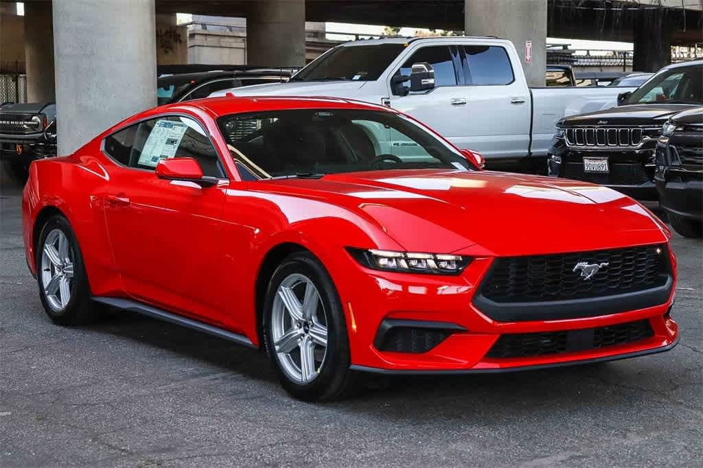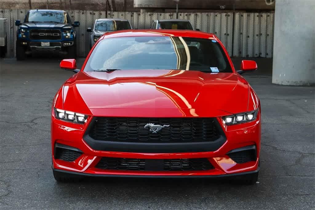 Race Red 2026 Ford Mustang EcoBoost RWD 10-Speed Automatic EcoBoost 2.3L I4 GTDi DOHC Turbocharged VCT 1st Row Carpeted Black Floor Mats, 4-Wheel Disc Brakes, ABS brakes, Air Conditioning, Alloy wheels, AM/FM Stereo, Auto High-beam Headlights, Automatic temperature control, Brake assist, Bumpers: body-color, Compass, Delay-off headlights, Driver door bin, Driver vanity mirror, Dual front impact airbags, Dual front side impact airbags, Electronic Stability Control, Emergency communication system: 911 Assist, Exterior Parking Camera Rear, Four wheel independent suspension, Front anti-roll bar, Front Bucket Seats, Front Center Armrest, Front dual zone A/C, Front reading lights, Fully automatic headlights, Illuminated entry, Knee airbag, Leather Shift Knob, Low tire pressure warning, Occupant sensing airbag, Outside temperature display, Overhead airbag, Overhead console, Panic alarm, Passenger door bin, Passenger vanity mirror, Power door mirrors, Power steering, Power windows, Premium Floor Liners Front and Rear (with Carpet Mats), Radio data system, Rain sensing wipers, Rear anti-roll bar, Rear Parking Sensors, Rear window defroster, Remote keyless entry, Speed control, Speed-sensing steering, Speed-Sensitive Wipers, Split folding rear seat, Sport steering wheel, Steering wheel mounted audio controls, SYNC 4, Tachometer, Telescoping steering wheel, Tilt steering wheel, Traction control, Trip computer, Variably intermittent wipers, Voltmeter, Wheels: 18 x 8 Painted Shadow Silver Cast Aluminum.
